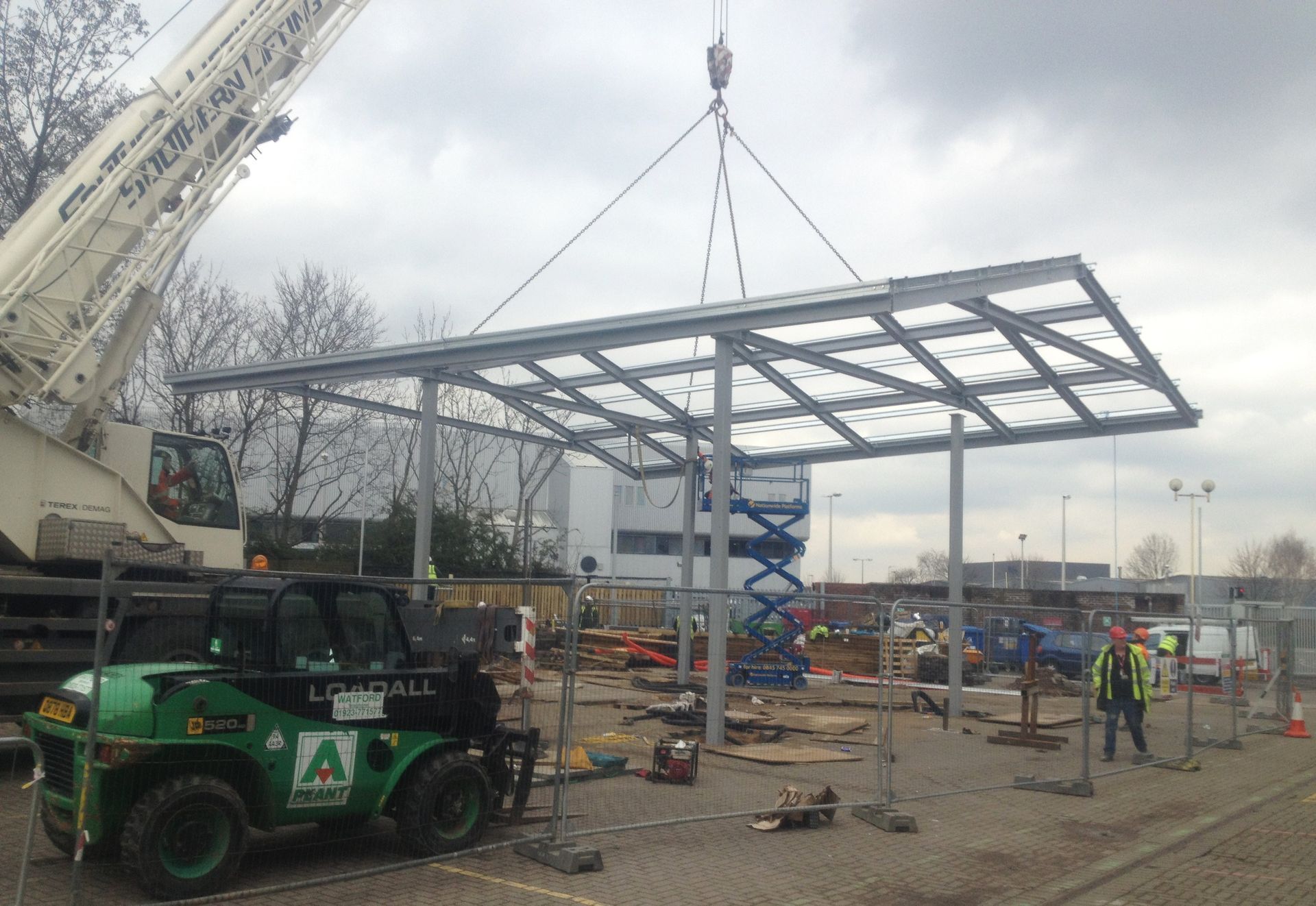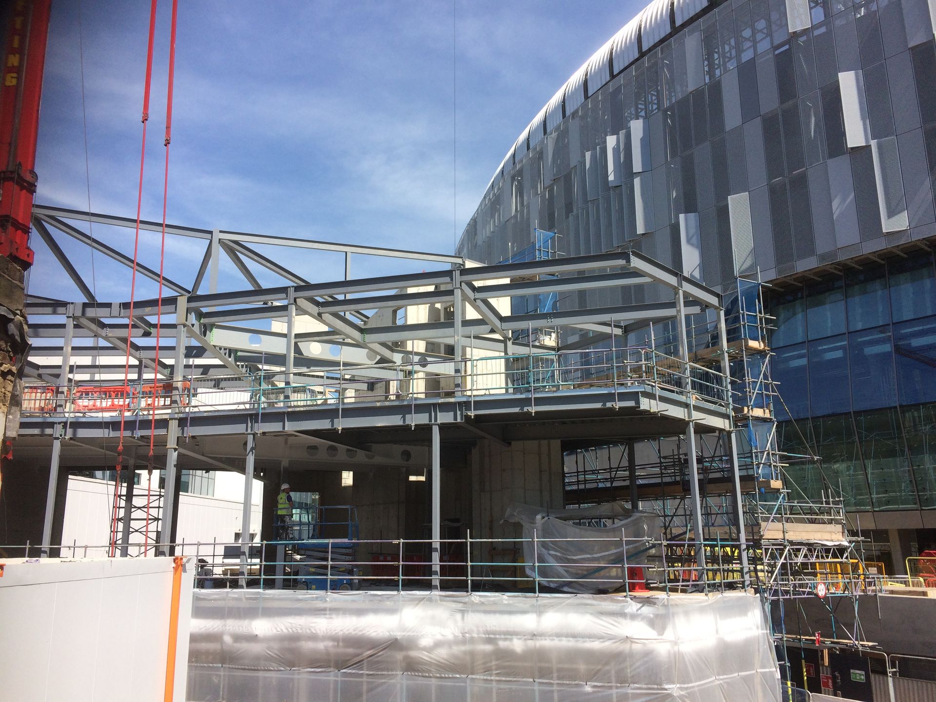 Structural steelwork fabricated and installed to form THFC new ticket office