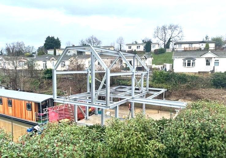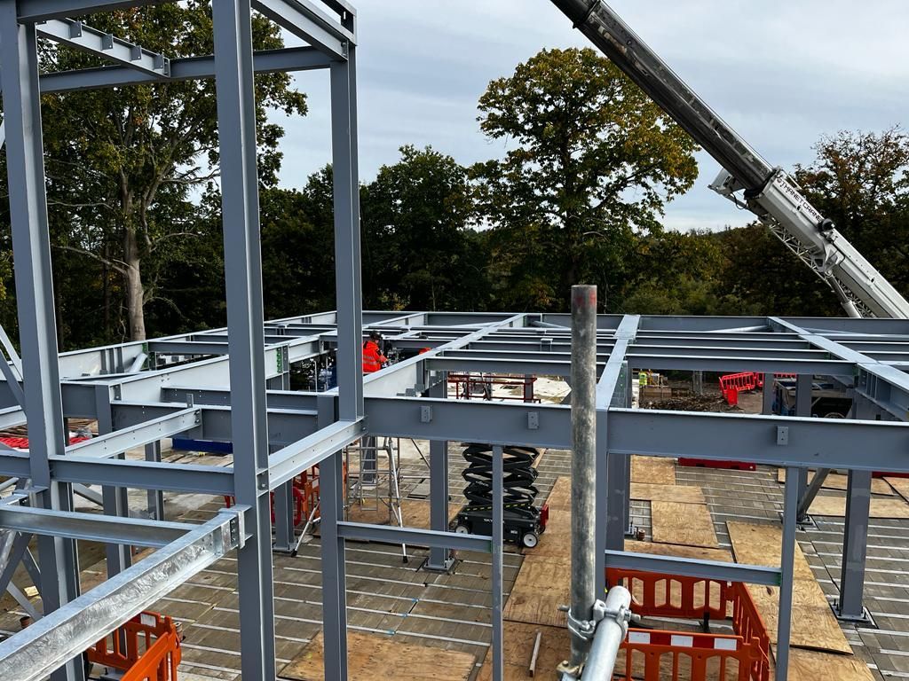 Fabricated and installed steel frame to form the structure of a new build detached family home