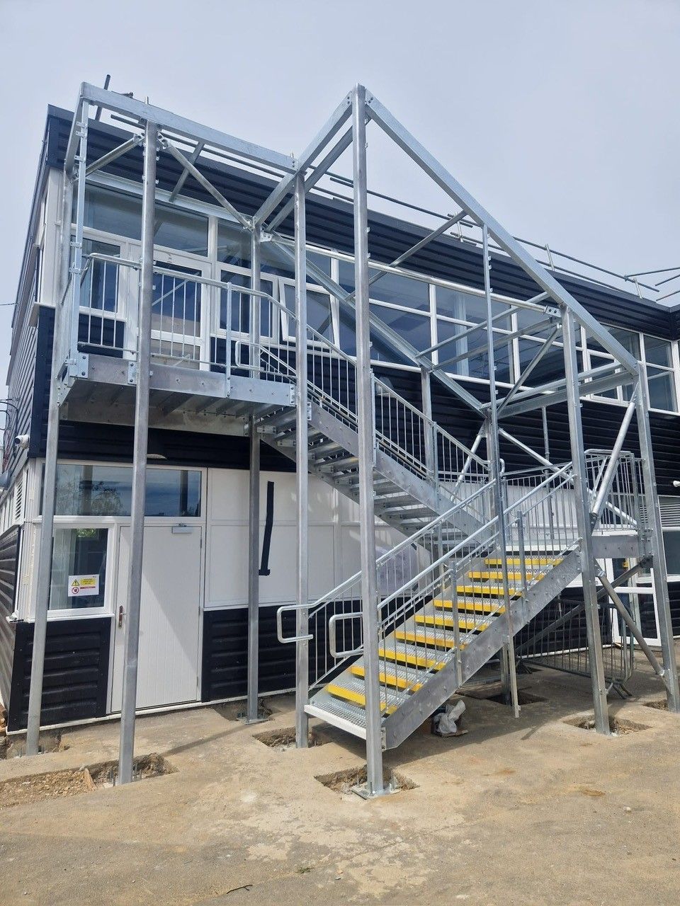 Modern design steelwork and balustrading installed to form a new office and warehouse space